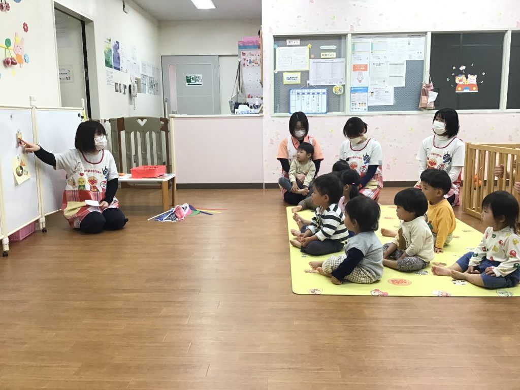 絵本を見たり、こどもの日の由来についての話も聞きました。