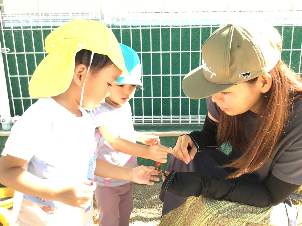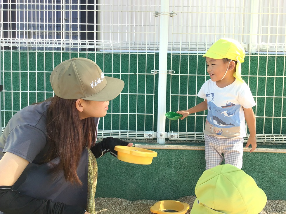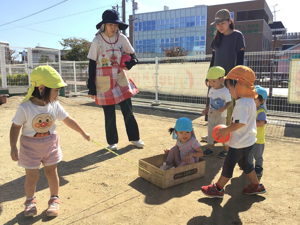 朝のおやつを食べた後は、園庭で遊びました。
