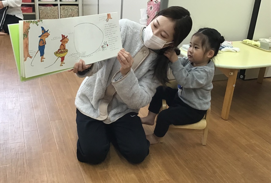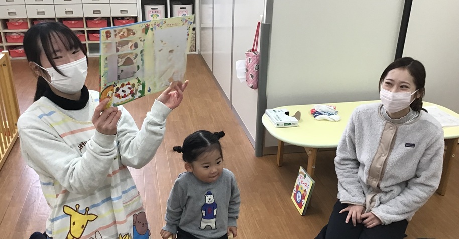 2歳児のお友だちは真剣にお話しの世界に入っていました。